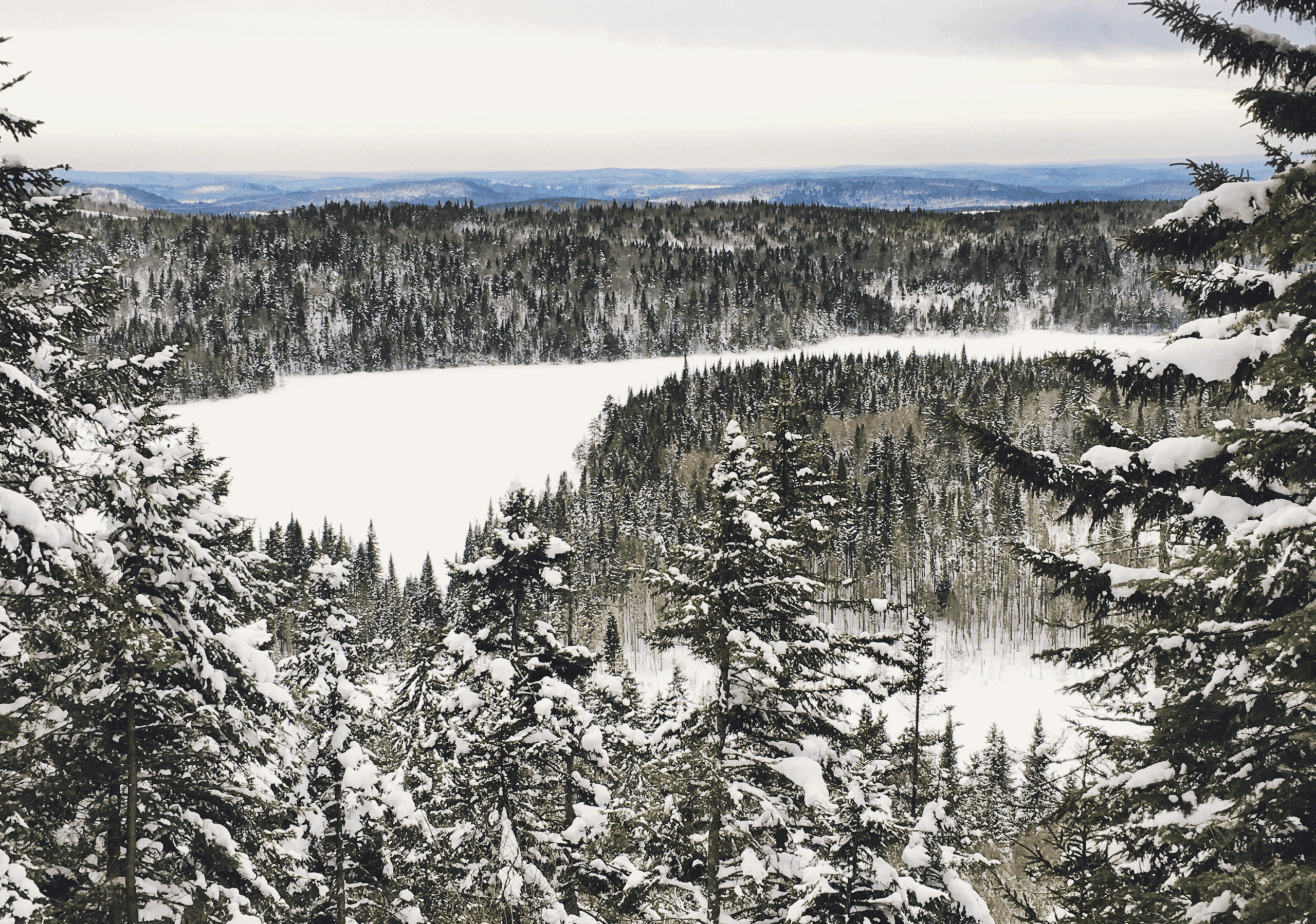 From the Perthuis Welcome Center, you’ll begin with a 30 km shuttle ride that brings you to the Mauvaise Welcome Center—the starting point of your hike. A 2 km forest road leads you to the Philosore Trail, which offers one of the most authentic nature immersions in the entire Vallée Bras-du-Nord hiking network. Your day will be filled with discovery as you cover 7.7 km in winter or 9.8 km in summer, ending at the Orignal Shelter for your first overnight stay.