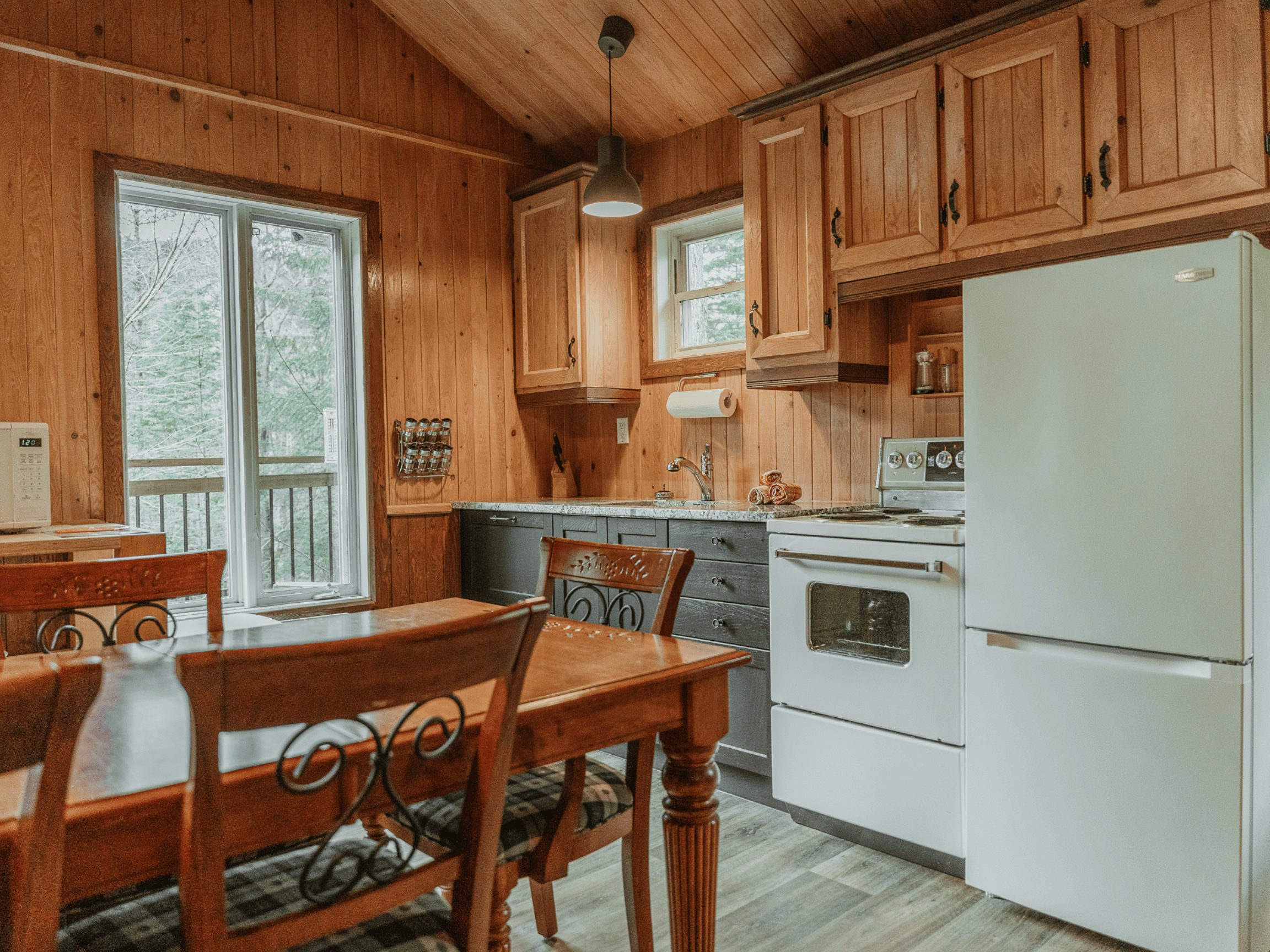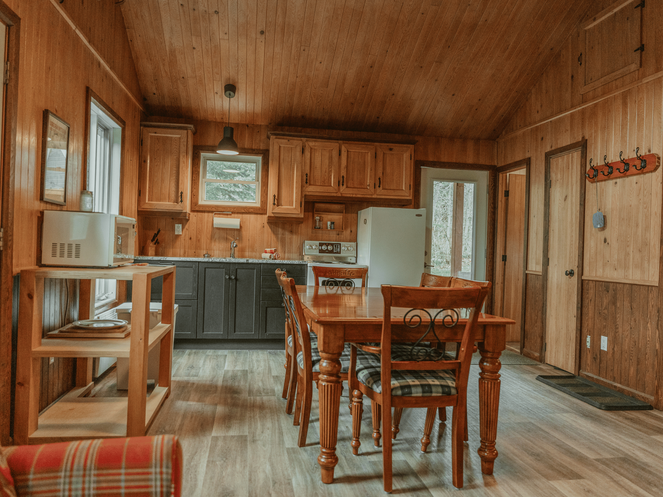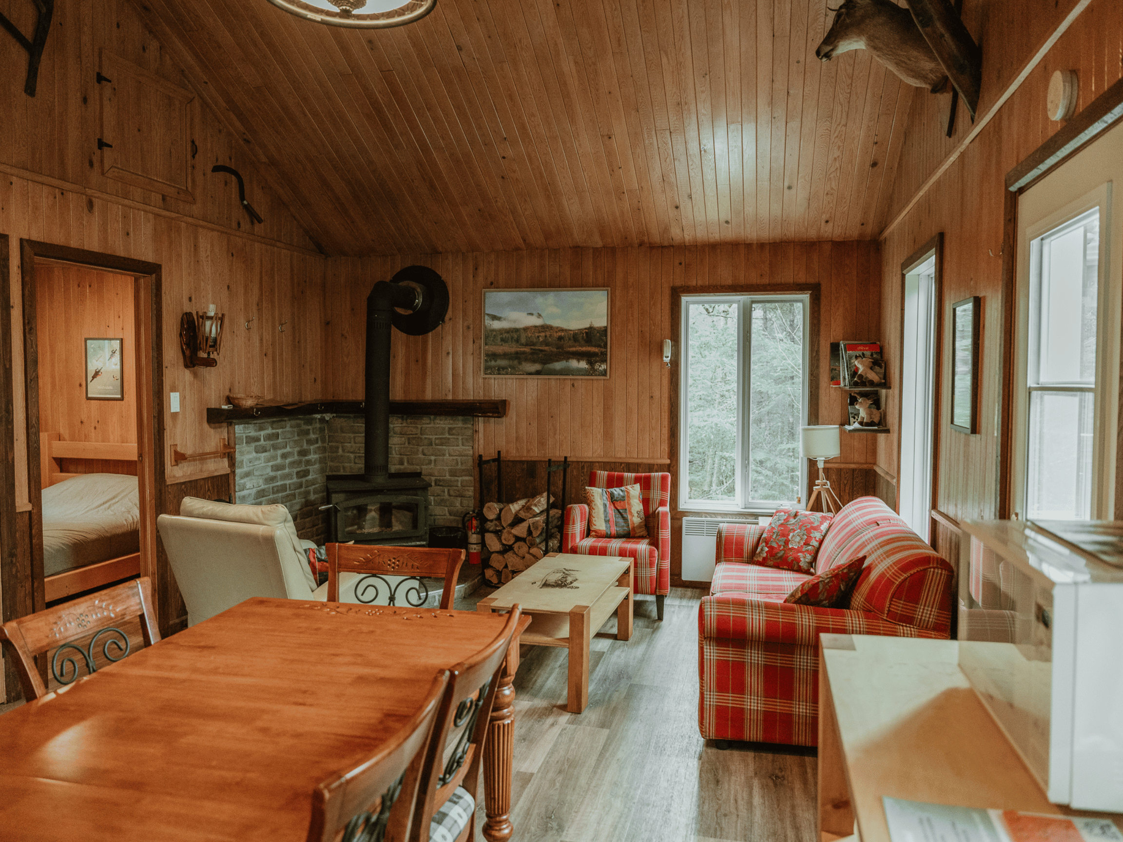Pied-à-terre au départ des sentiers, le Petit Loup est situé directement sur le chemin qui va de l’accueil Shannahan à la passerelle sur la rivière Bras-du-Nord.