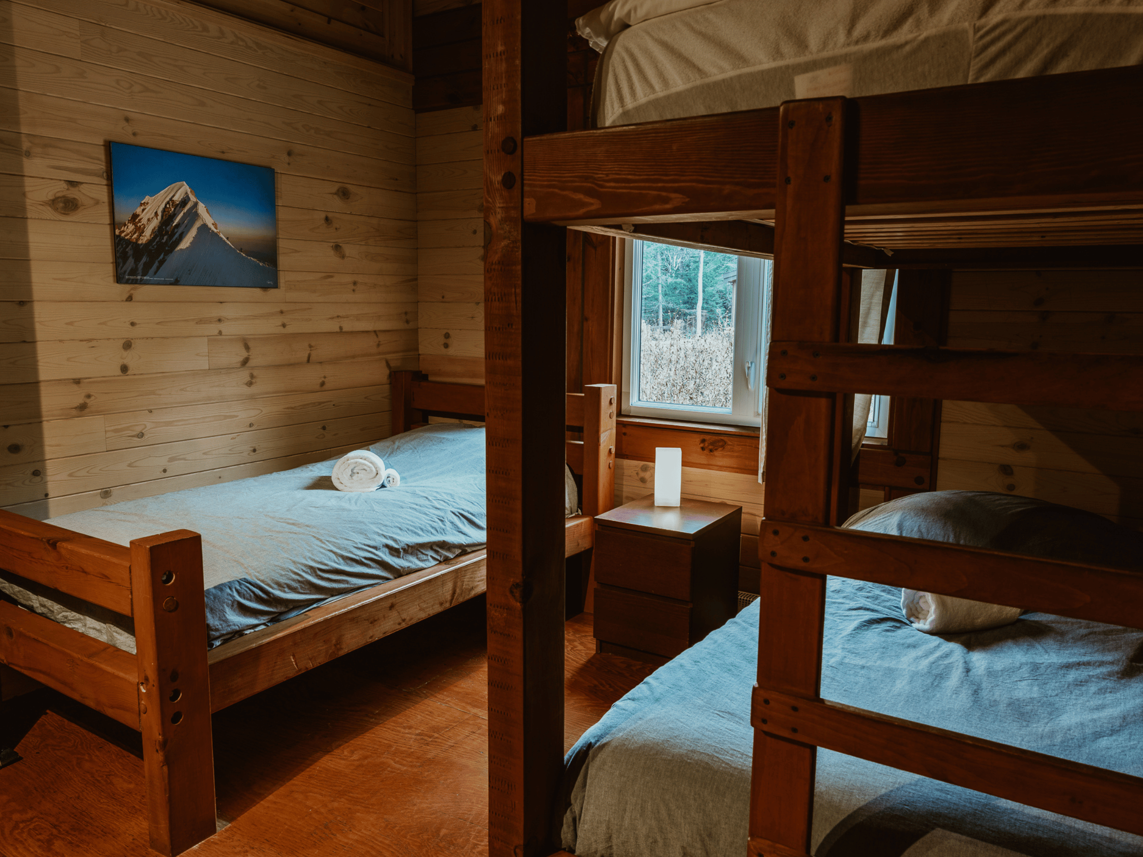 Niché sur un verdoyant plateau à 200 mètres de l’Accueil Shannahan, le chalet Loess est l’endroit de prédilection pour les groupes qui souhaitent vivre un séjour de plein air en toute tranquillité. Construit en 2012, ce chalet de bois massif promet une fenestration abondante et orientée sur les montagnes qui donne l’impression d’être en pleine nature à tout moment. Ce chalet propose quatre chambres et une salle spacieuse pour ranger votre équipement de plein air. À l’extérieur, un appentis vous permettra de ranger vos vélos à l’abri des intempéries.